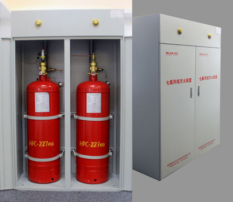 该系统又分为柜式气体灭火装置和悬挂式气体灭火装置两种类型,其适应于较小的、无特殊要求的防护区。