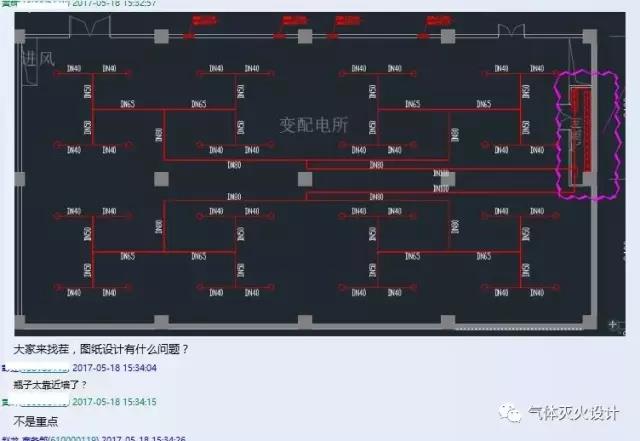 从讨论的过程中看,很多人都忽略了钢瓶间的要求。从图纸看,钢瓶间只有一个门,门开向防护区,试想如果发送火灾,联动控制系统不起作用,需要机械应急启动的话,人员能从发送火灾的防区进入钢瓶间吗?